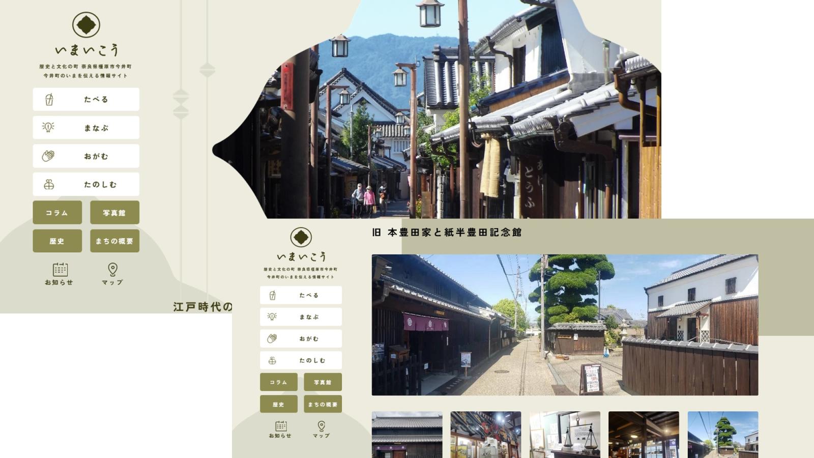「いまいこう」は、たべる・まなぶ・おがむ・たのしむをコンセプトに今井町を遊びつくすための情報ポータルサイトです。